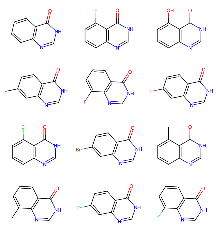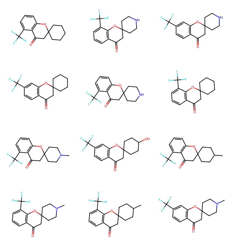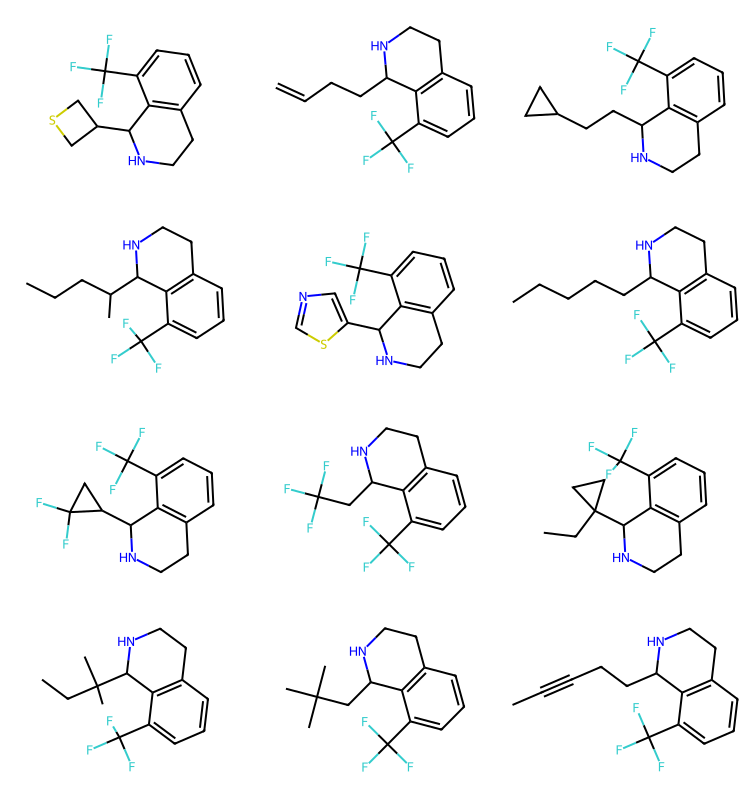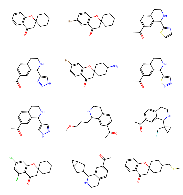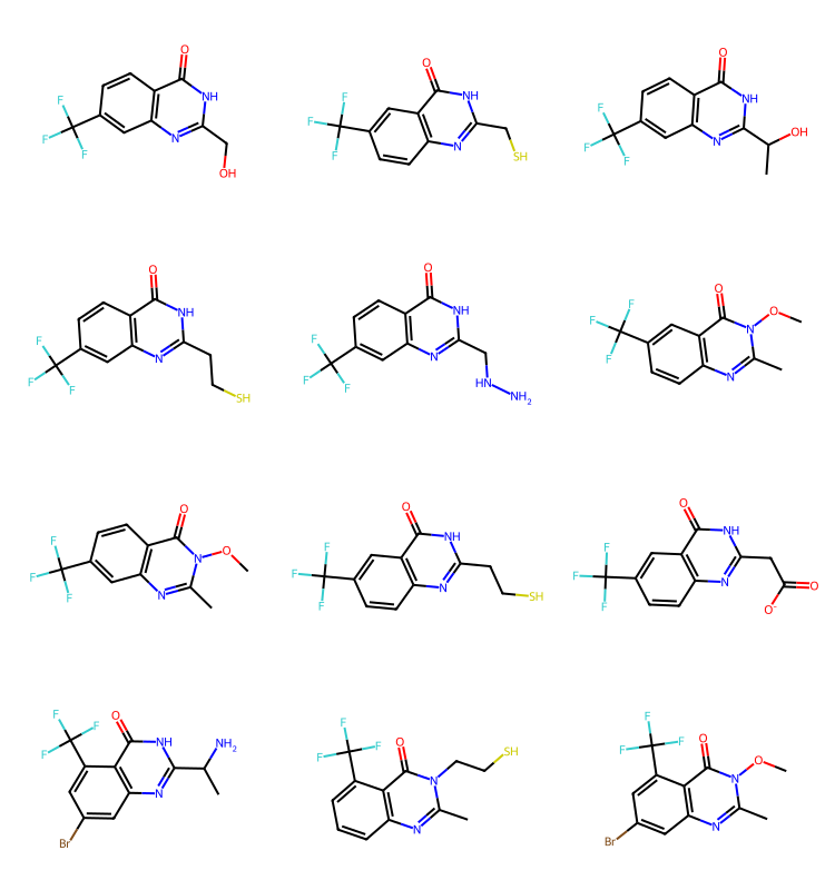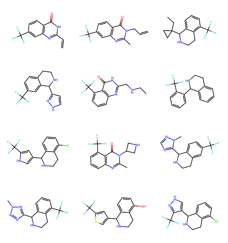 Draw.MolsToGridImage(resMols[:12],subImgSize=(250,200)) if len(resMols) else None778 results