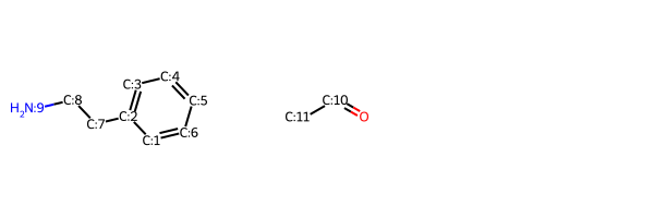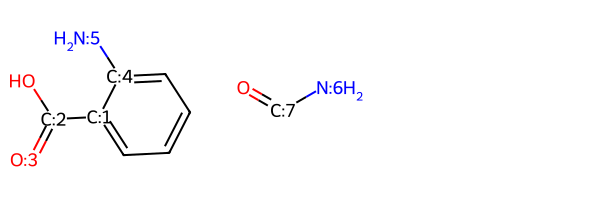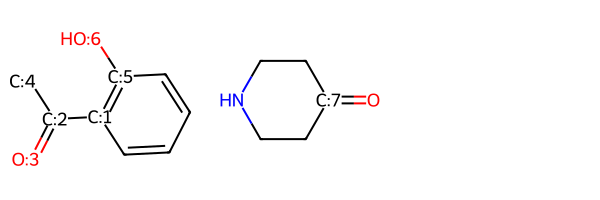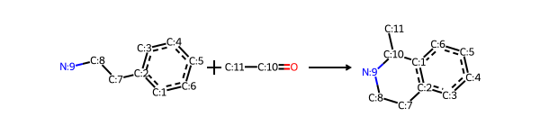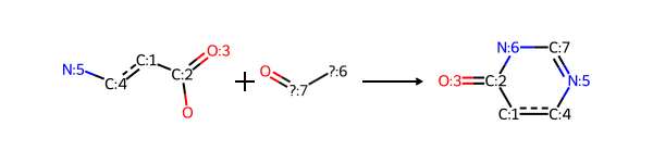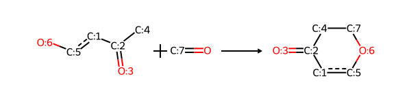To make what’s going on in the reaction a bit easier to identify, here I add the atom map numbers from the reaction to the sample educts: