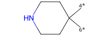 >>[4*][C:11]1([6*])-[CH2:12]-[CH2:13]-[N,C:14]-[CH2:15]-[CH2:16]-1')